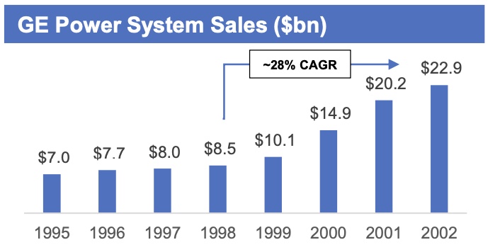 - Gas turbine operation boom in early 2000’s drove new turbine sales, as evident in the hockey stick in GE gas turbine sales over the same period