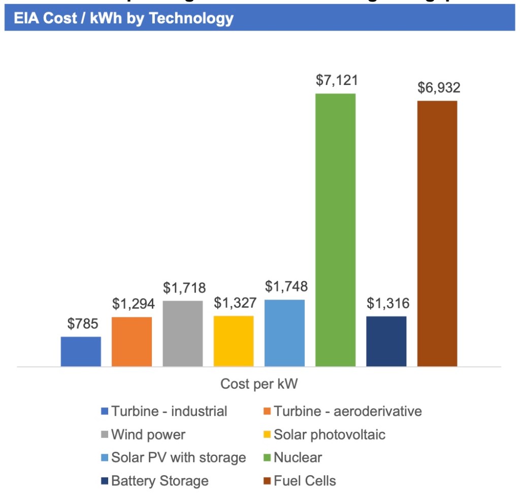 Natural Gas turbine cost / kWh is 65% cheaper than median cost of renewable alternatives, making it the winner in power generation as we bridge the gap in utility constraints