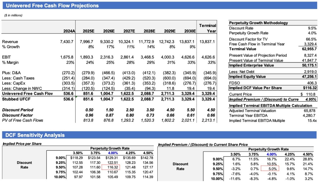 My target price is $175 / share over a 2-year hold period, generating a ~25.5% IRR with a 4:1 risk / reward