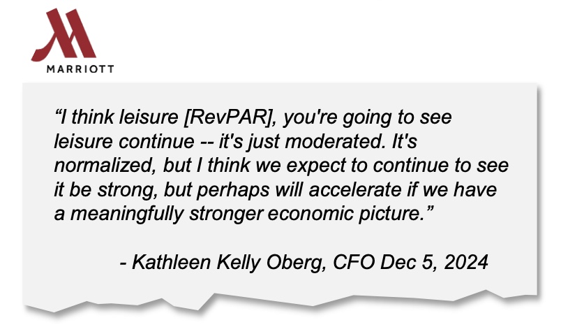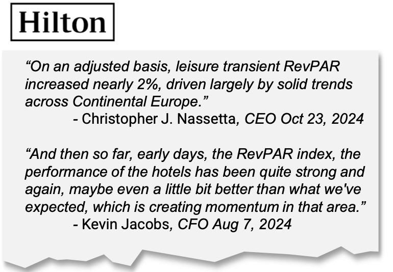 Hotels like Hilton, Marriot, and Hyatt have referenced continued pricing momentum, especially in leisure and international markets, pointing to strong pricing growth in cruises