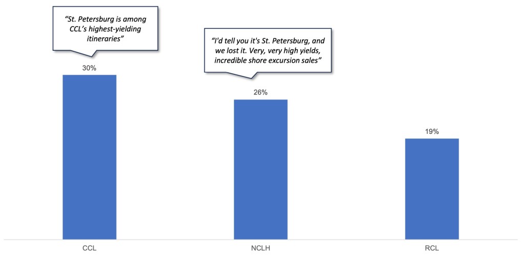 - Another tailwind for cruise lines is if the Russia / Ukraine conflict ends and St. Petersburg Port re-opens to cruises, which is a high-