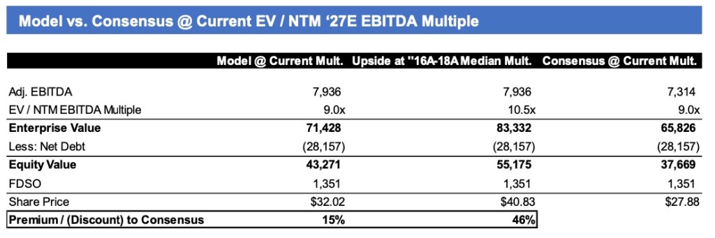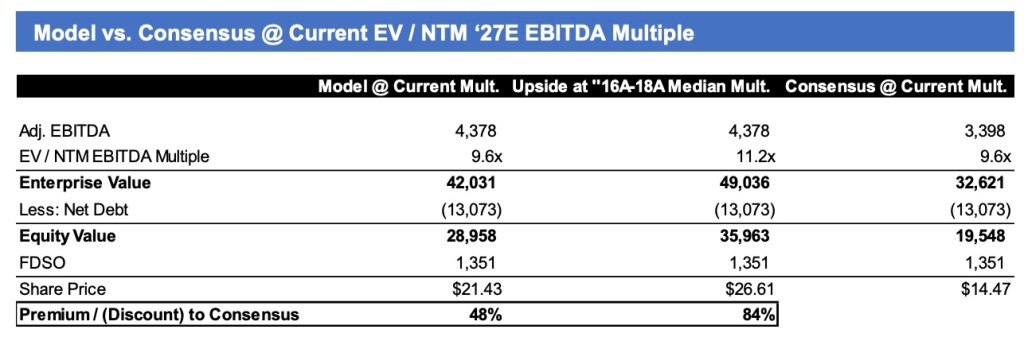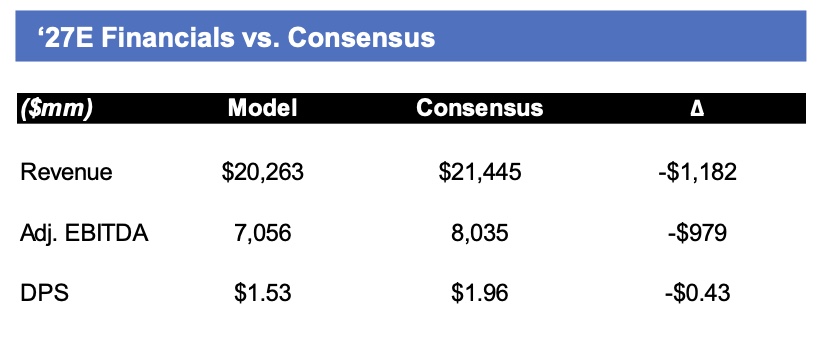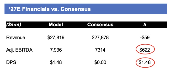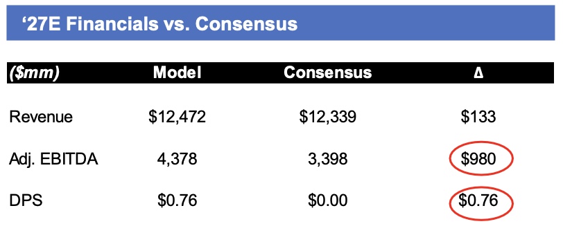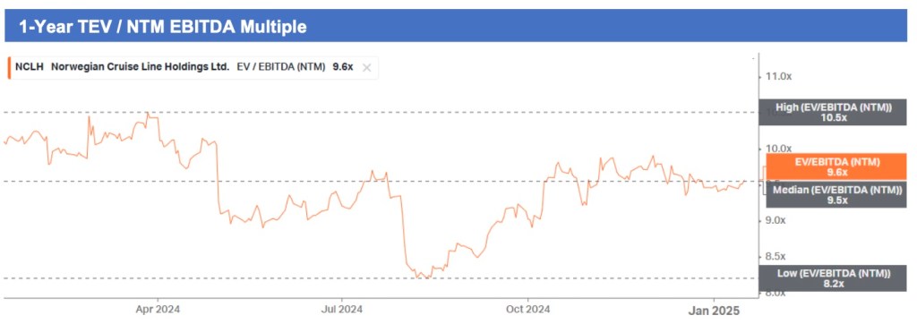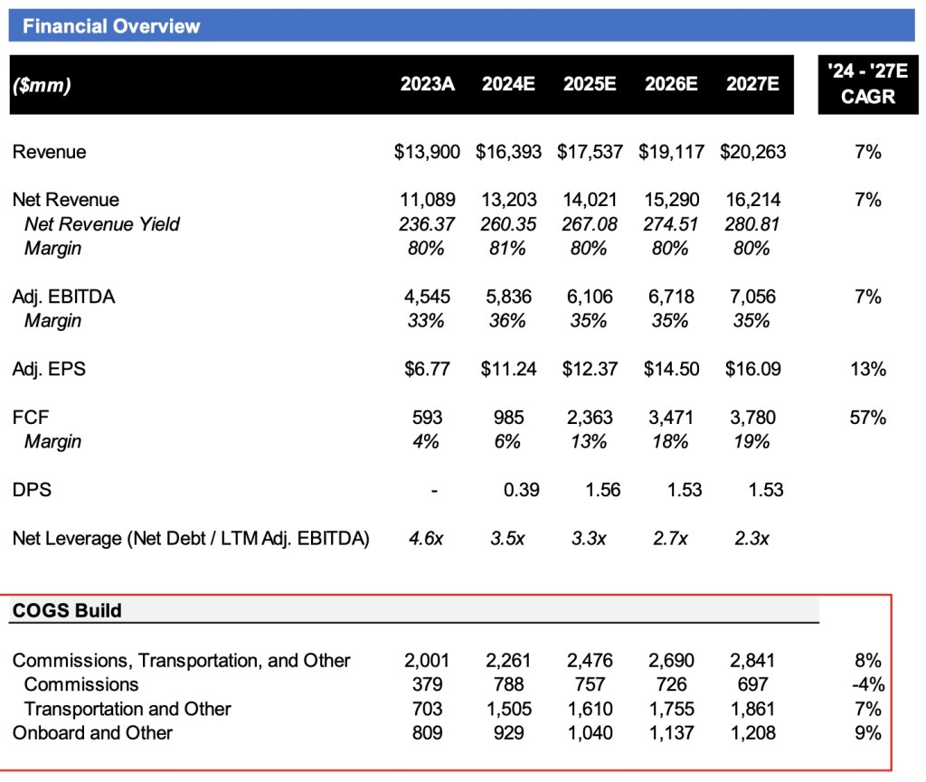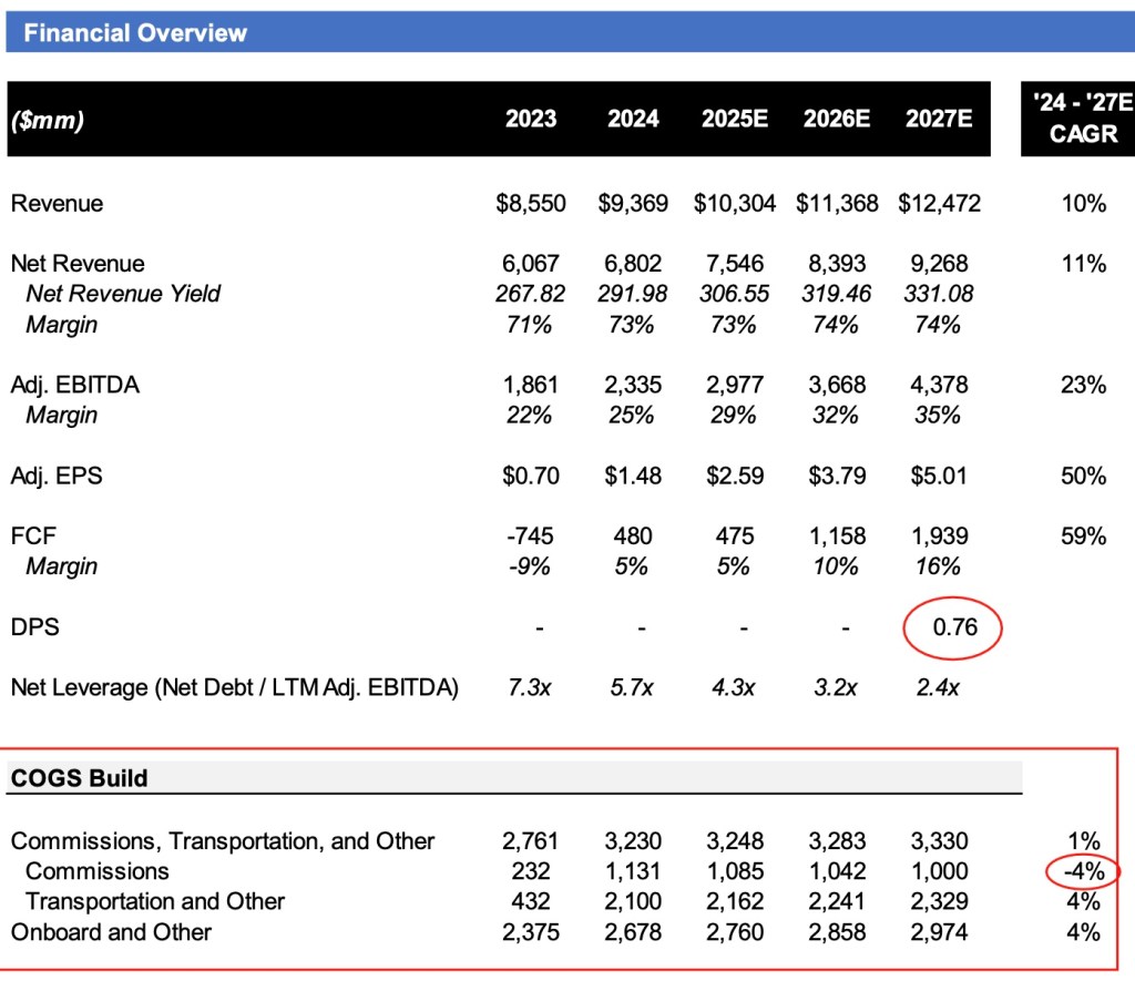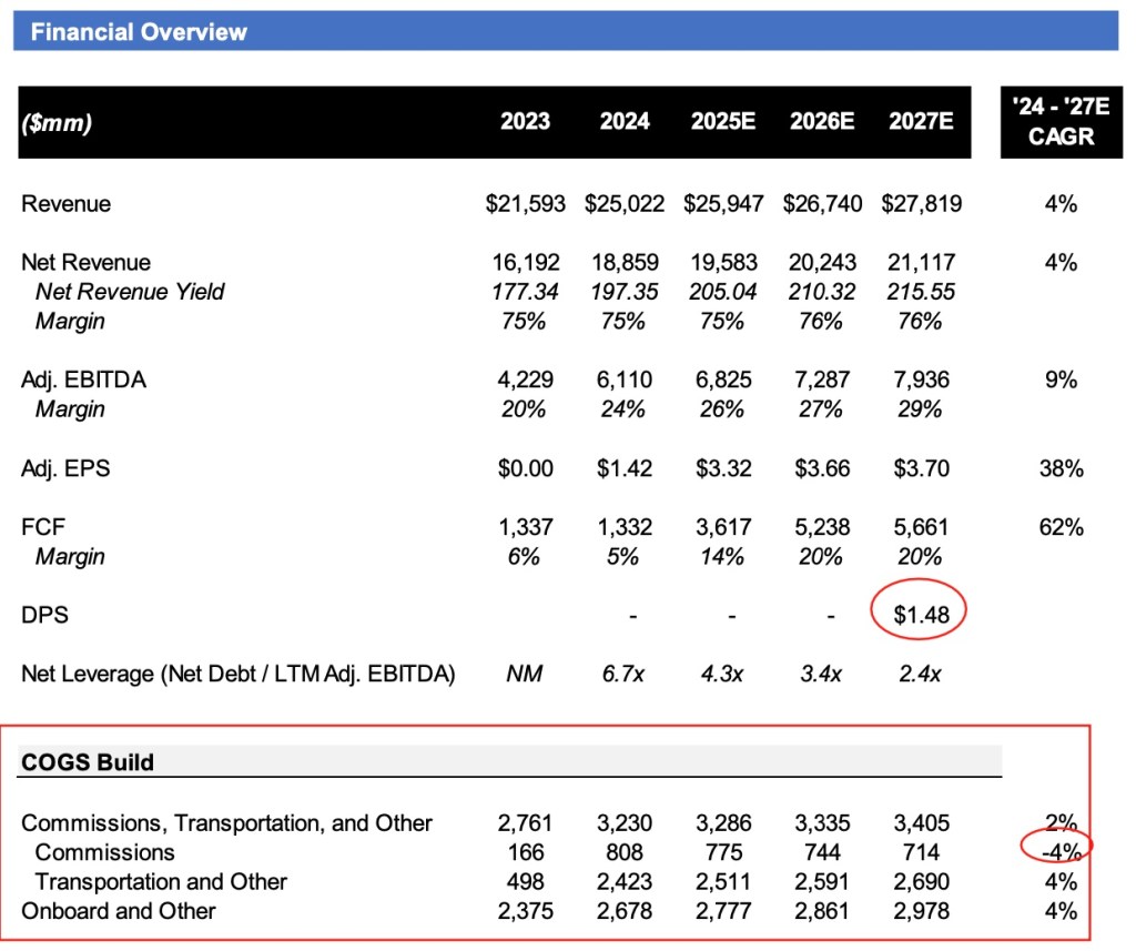 - Estimating NCLH to instate a dividend in 2027E with net leverage in the ~2x range